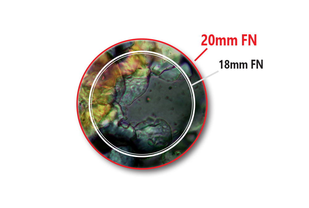 Enjoy a 20mm field of view ensures you to gain peripheral view and comfort when observing the specimen. This means more efficient inspections and allows a natural and easy view, particularly needed in a laboratory environment.